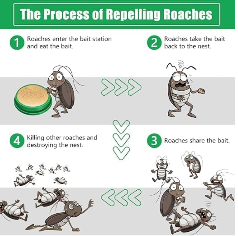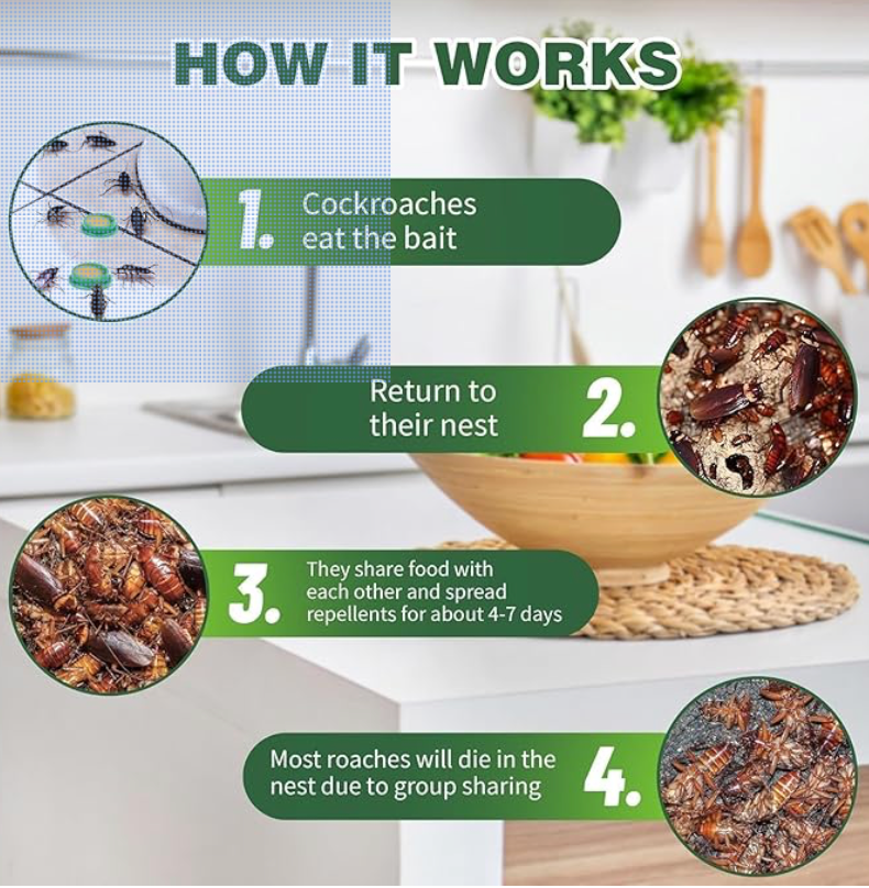 360° Household Shield – Creates an invisible barrier that keeps roaches away, protecting your food, clothes, and storage areas.